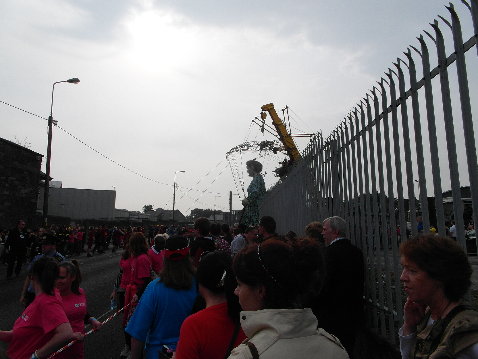 I avoided knocking over children to get out of the station, and turned right, following the music. No one knew where they were going, but we all bore to the right anyway. The lads in the hi-viz vests didn’t know where we were meant to go, but they did know we couldn’t go down the road they were blocking. Some gave up when they saw that barriers had been placed against the kerbs and dutifully went to wait behind them. Feck that, I thought, and kept going.