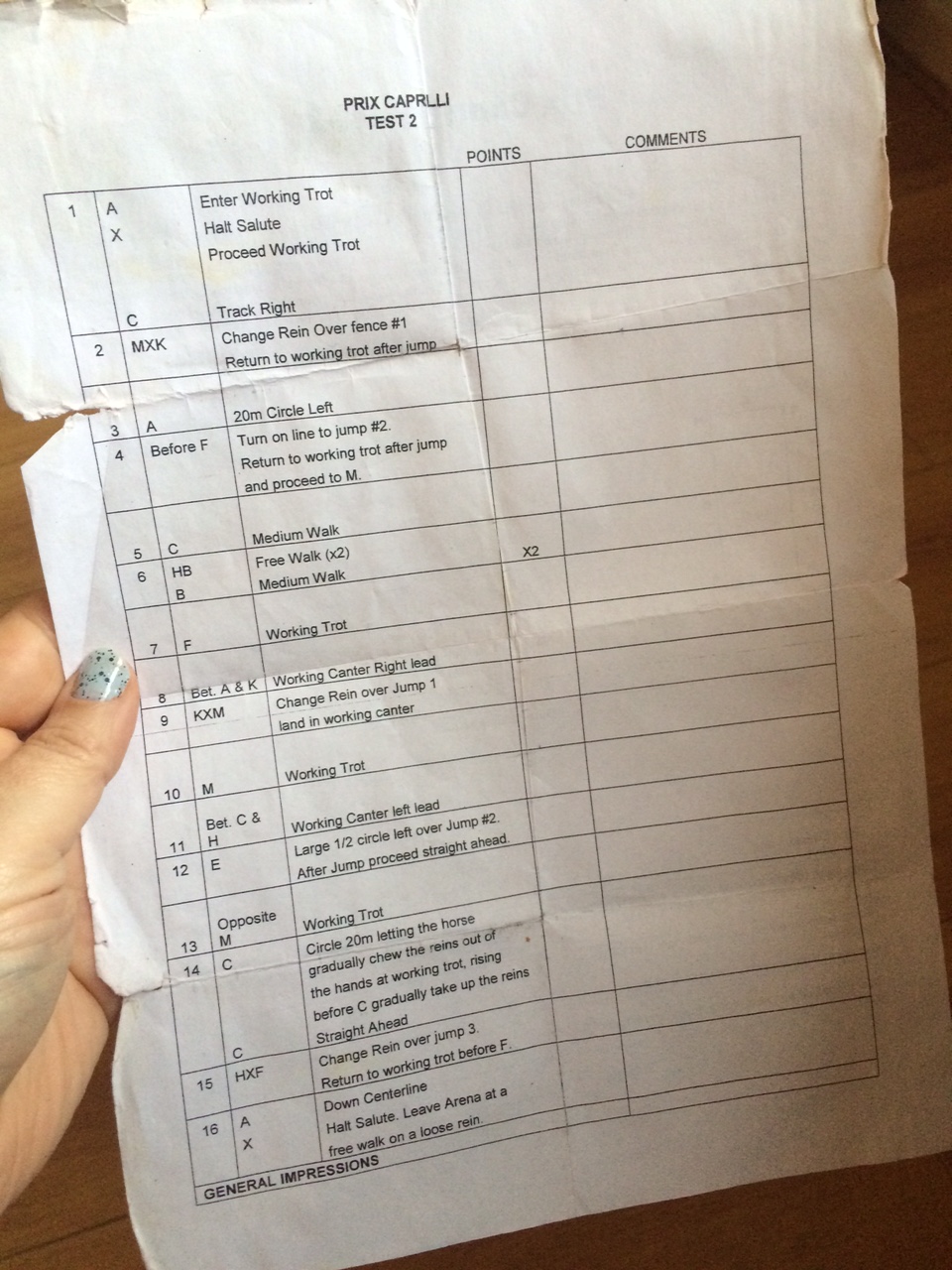 This was one of those tests for which we did a dry run in our lesson and never got around to ‘doing’ properly, with the white boundary markers and the marking. It is so old that I was riding Delilah at the time — so this is like, 2007 — I am pretty sure I moved on to Rebel at some stage that year as well, so it must have been winter.
