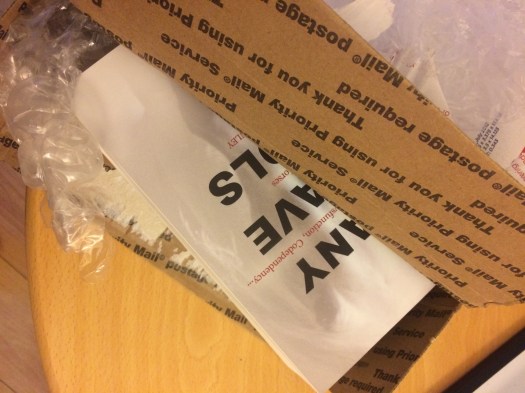 Ugh: hate getting those ‘sorry we missed you’ notes from the postman. I was going to go and collect it before I went into work last Thursday but, certain it was the actual embodiment of spam [while I no longer review books, I still occasionally get the odd sportsman memoir] I didn’t bother. I’d have to get up like, half an hour early, wait for the bus, take the bus up, collect it and then wait for the bus into town and I was not bothered.
